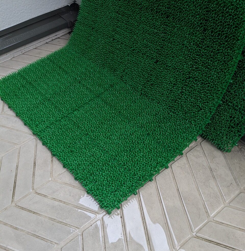 100均の人工芝はトイレしたら外の水道で洗えるし、目が荒いので乾きやすいです。