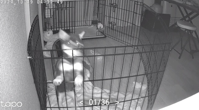 まずケージでのお留守番での様子について。(広めのサークル内でのお留守番)