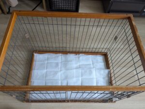 ケージは通常愛犬の寝床とトイレを並べて使用することが多いと思いますが、私はケージを丸々トイレに使用しました。