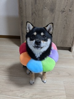 爪切りや傷を舐めるのを防止する際には、ドーナツ型のクッション素材のカラーを使用してます。